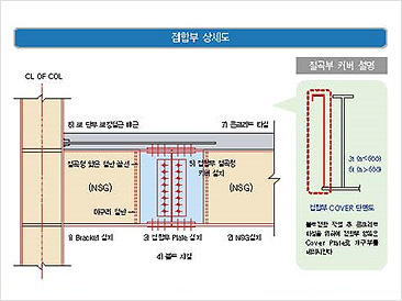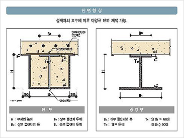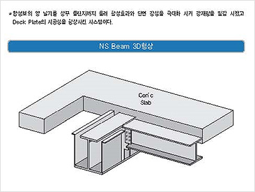 단부는 합성보를 적용하고, 중앙부는 철골부재를 적용함으로써 경제적이고 층고절감 효과가 있는 구조시스템이다.